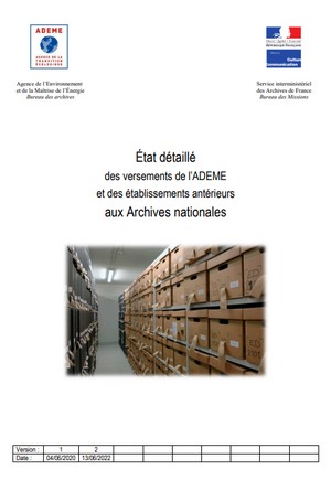 Etat des versements réalisé par Damien Ferrero, archiviste de l’ADEME