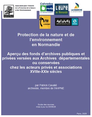 Guide réalisé par l’AHPNE en partenariat avec Archives départementales du Calvados, de l’Eure, l’Orne, la Manche et de la Seine-Maritime , mise à jour 04/06/2025 (ajout du fonds d’archives concernant les sites et le "Comité régional d’étude pour la protection et l’aménagement de la nature en Basse-Normandie", le conseil général ds ponts et chaussées et l’inspection générale, d’entretiens de personnalités). A télécharger. Cet instrument de recherche correspond à l’inventaire de plus de 6 000 dossiers conservés aux Archives départementales.