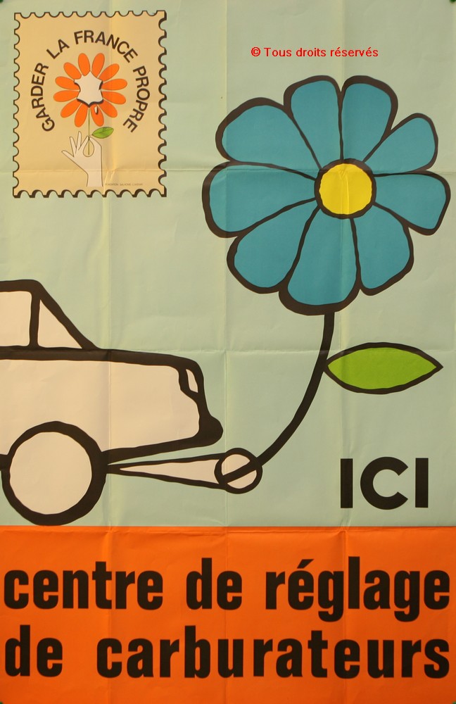 Affiche "« Garder la France propre - Centre de réglage de carburant »", 1982