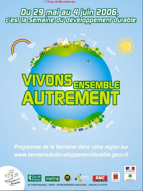 Voir fonds d’archives versées aux Archives nationales « Vivons ensemble autrement - Semaine du développement durable du 29 mai au 4 juin 2006 », 40x60 cm, couleur, 2006
