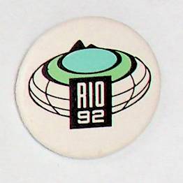 Badge réalisé dans le cadre du forum de Rio de 1992.