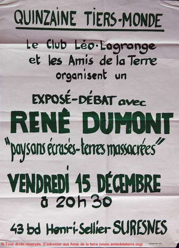 Exposé-débat avec René Dumont, campagne d’information, Les Amis de la Terre