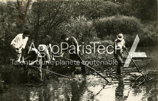 Les Jeunes pour la Nature des Yvelines travaillent au récurage et au nettoyage des berges de l’étang du Parc d’Observation de Broussay (Photo Patrice SAGUET / mention souhaitée).
