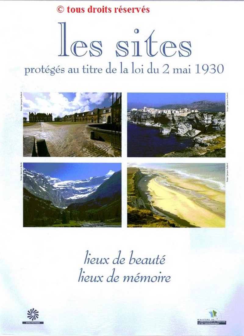 | 20060546/3 « La diversité des espaces protégées/au titre de la loi du 2 mai 1930/[...]/Les sites historiques/et légendaires/[...]/Les sites scientifiques/[...]/Les sites pittoresques/[...]/ Les sites artistiques/[...] », Parimage (Ed.), [1999], photos de Serge Sautereau, Jacques Chauvenet et la Photothèque des espaces protégés, [quatre photos représentant respectivement : les sites des Romans de la Table ronde dans la Manche et l’Orne, le Canal du Midi dans la Haute-Garonne, l’Aude et l’Hérault, le Belvédère en Corse du Sud, le site de Giverny-Claude Monet dans l’Eure, plus logo], 1 ex., 40 x 30 cm, couleur |