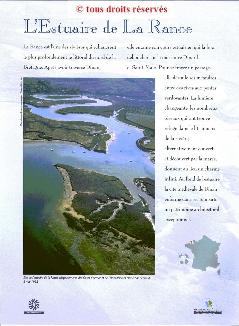 | 20060546/13 « L’Estuaire de la Rance/[...] », Parimage (Ed.), [1999], photo de Colette Debroise, et de la Photothèque des espaces protégés, [vue de l’estuaire de la Rance dans les Côtes-d’Armor et l’Ille-et-Vilaine, plus logo], 1 ex., 40 x 30 cm, couleur. |