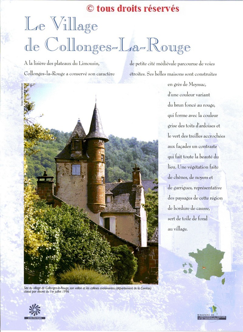 | 20060546/15 « Le Village/de Collonges-la-Rouge/[...] », v (Ed.), [1999], photo de Bernard Galéron, [vue du village de Collonges-la-Rouge, son vallon et les collines avoisinantes en Corrèze, plus logo], 1 ex., 40 x 30 cm, couleur. |