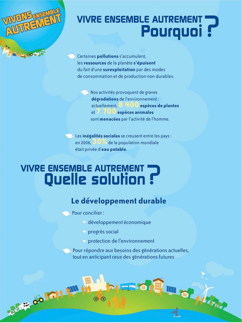 « Vivre ensemble autrement : pourquoi ? - Vivre ensemble autrement : quelle solution ? », Ministère de l’écologie et du développement durable, Agence de l’environnement et de la maîtrise de l’énergie (ADEME), 60x80 cm, couleur, 2007