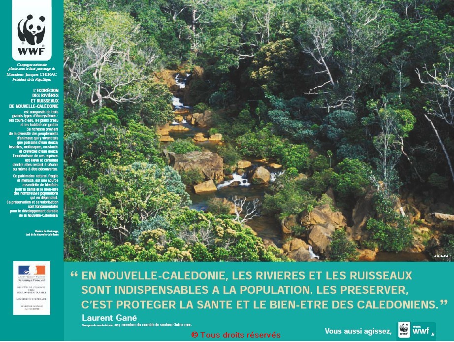 20070117/8 « L’écorégion des rivières et ruisseaux de Nouvelle-Calédonie - " En Nouvelle-Calédonie, les rivières et les ruisseaux sont indispensables à la population. Les préserver, c’est protéger la santé et le bien-être des Calédoniens. ", Laurent Gané, champion du monde de keirin 2003, membre du comité de soutien Outre-mer », 60x80 cm, couleur, 2004 |