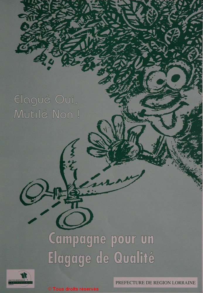20070315/10 Campagne pour un Elagage de Qualité - Elagué Oui, Mutilé Non !, DIREN Lorraine, Préfecture de région Lorraine, 30x40 cm, couleur, [1996] |