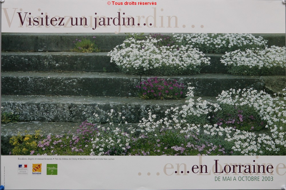 | 20070315/9 Visitez un jardin en Lorraine de mai à octobre 2006 - Jardin de la Franche Moitresse à Eulmont, Meurthe-et-Moselle, Ministère de la Culture, DIREN Lorraine, Comité régional du tourisme, 40x60 cm, couleur, 2006 |